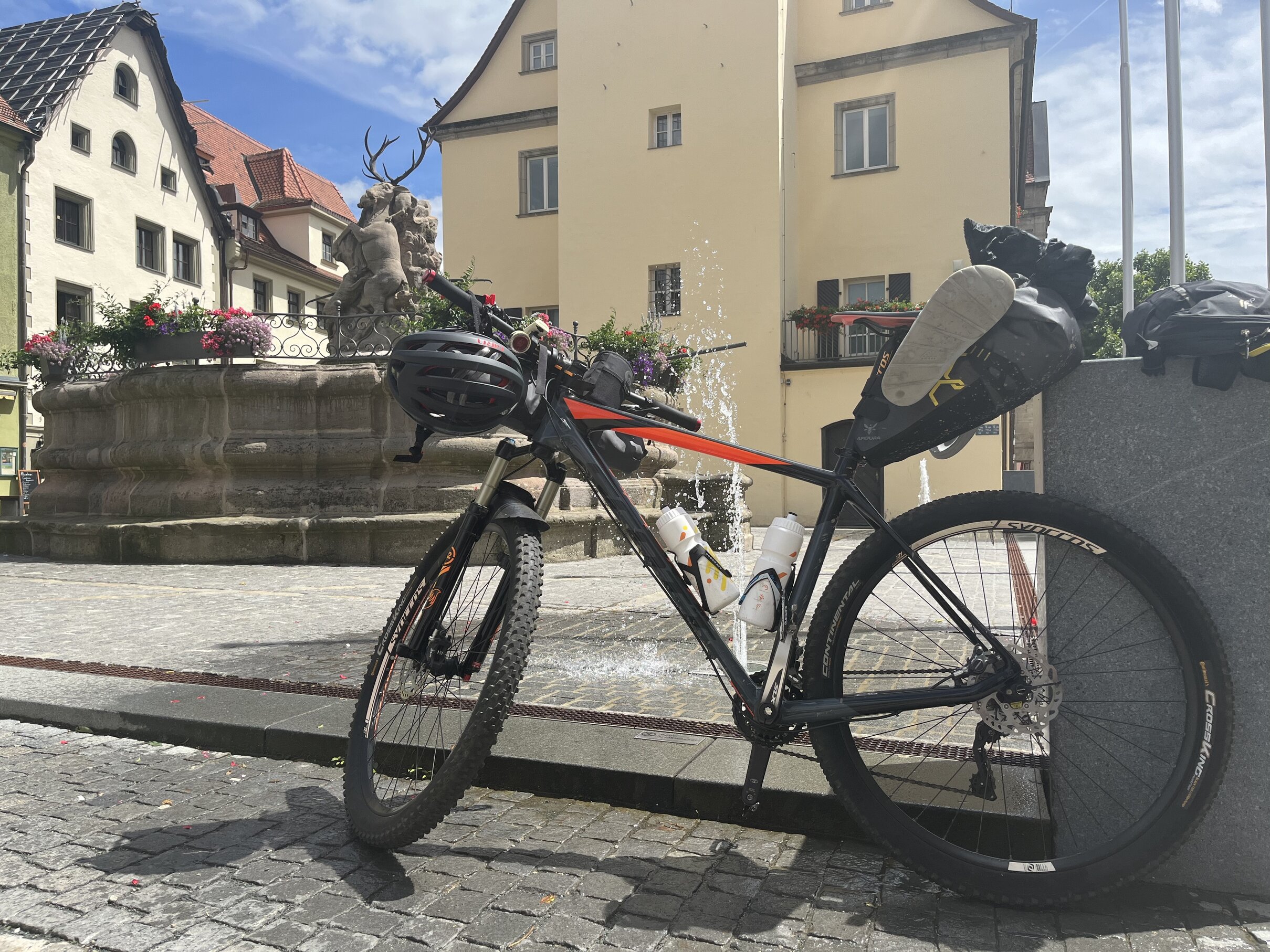 With that in mind, I set off at full speed out of Nuremberg, following a scenic route through the countryside. At every stop, I checked emails to stay on top of any important work matters, but luckily, there weren’t many. The timeline was tight, especially when the heat picked up around 3 PM. So, I grabbed a cold drink whenever I could and pushed on hard.