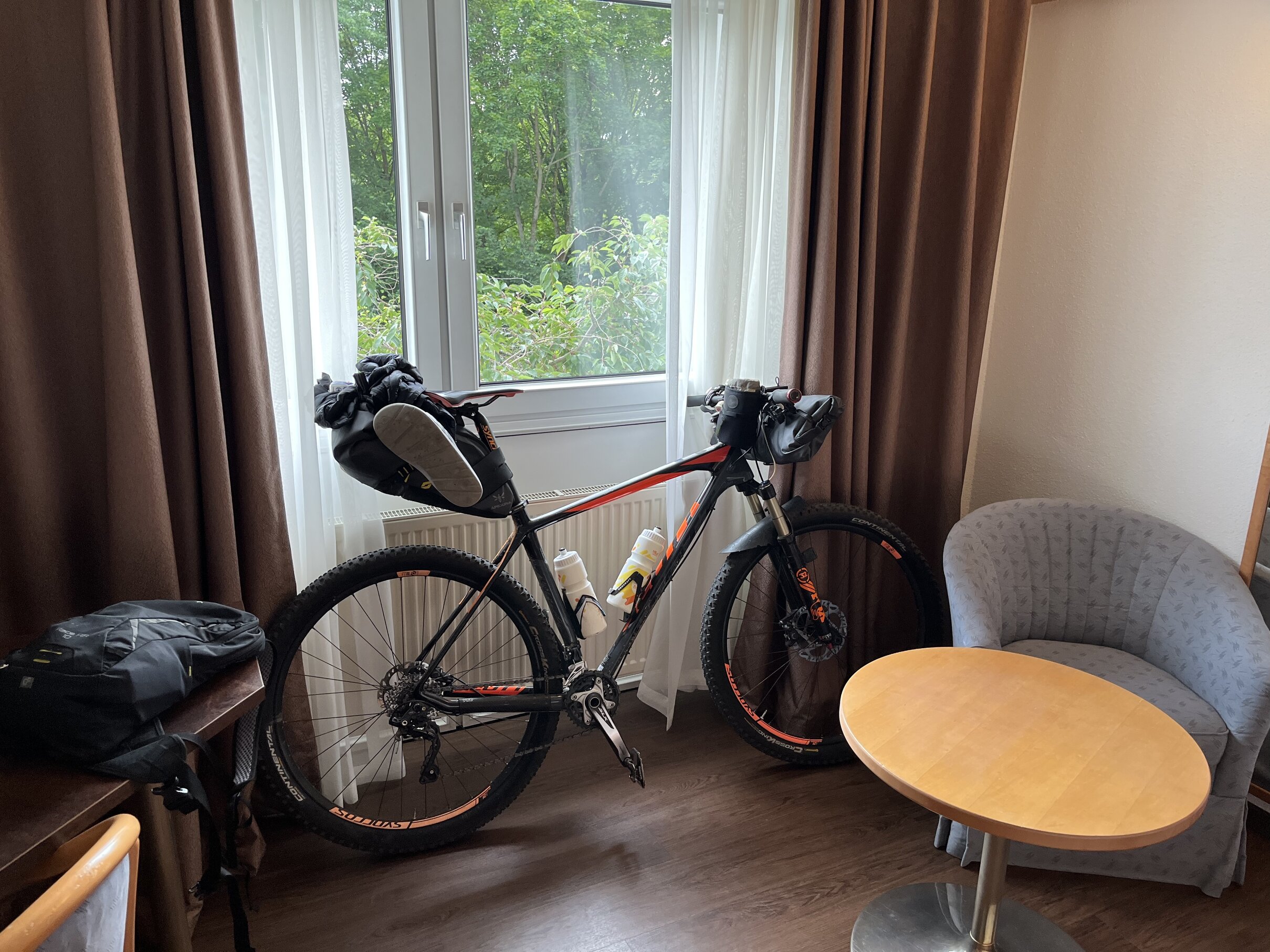 Unfortunately, the day before I was set to leave, I realized my gravel bike had an issue with the wheel. So, I grabbed my (old) SCOTT mountain bike and got it ready for the trip. The hackathon was set to start on Monday, so I had 3–4 days to get there. I mapped out the route for the first day and planned to take things day by day, adjusting based on the weather and how I was feeling.