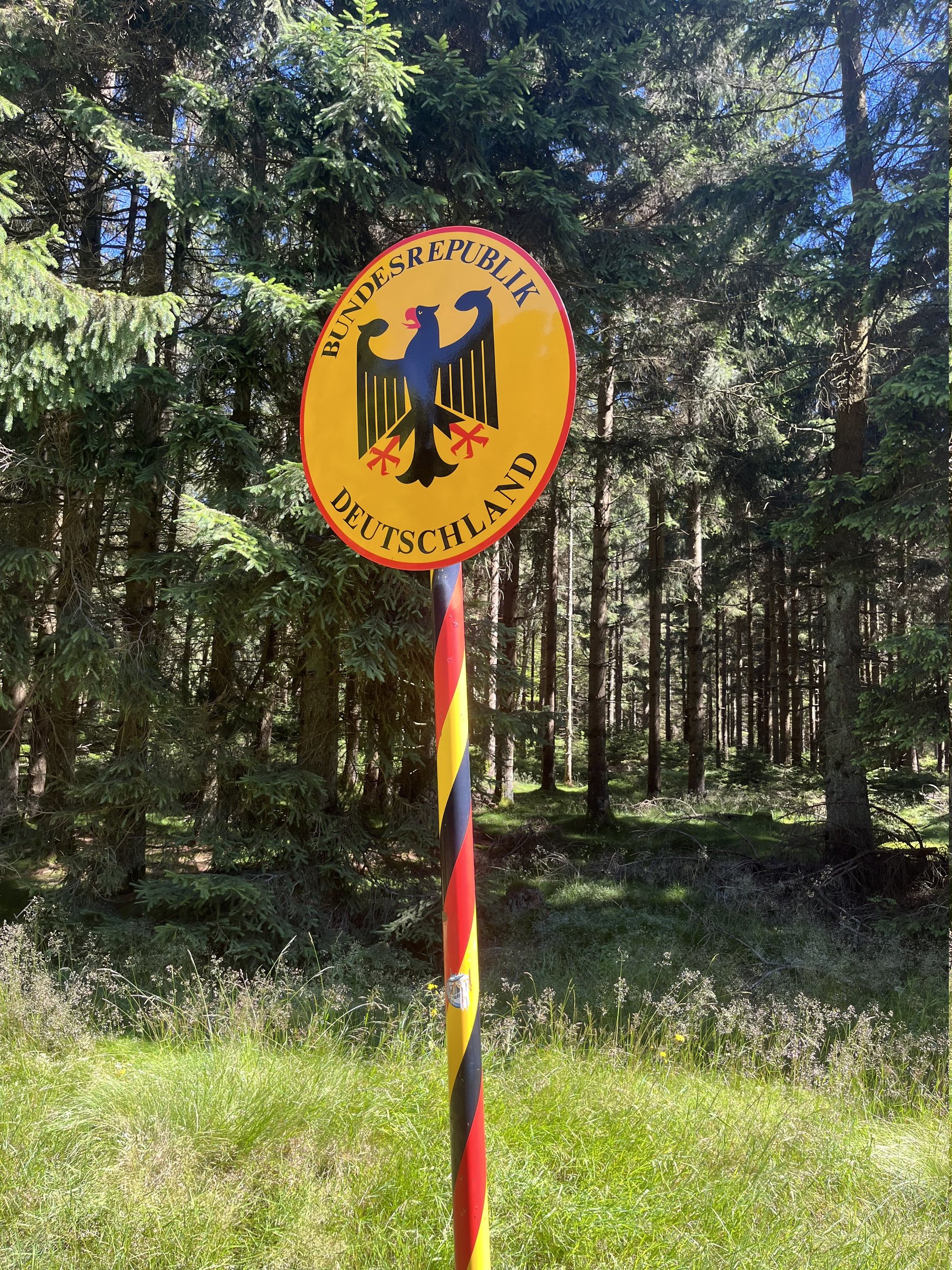 Day two started with perfect weather, and by 8 AM, the temperatures were already high. I decided to stop by a bakery and another store to grab some sunscreen—definitely the best decision I made that morning. After taking a quick look around Weiden in der Oberpfalz and having a light breakfast, I set off on what turned out to be the toughest stage of the journey. Just 5 kilometers in, I was met with a steep 650-meter climb. By the time I reached the highest point at the border, I was drenched in sweat. But the route promised an incredible downhill ride, which I was really looking forward to.