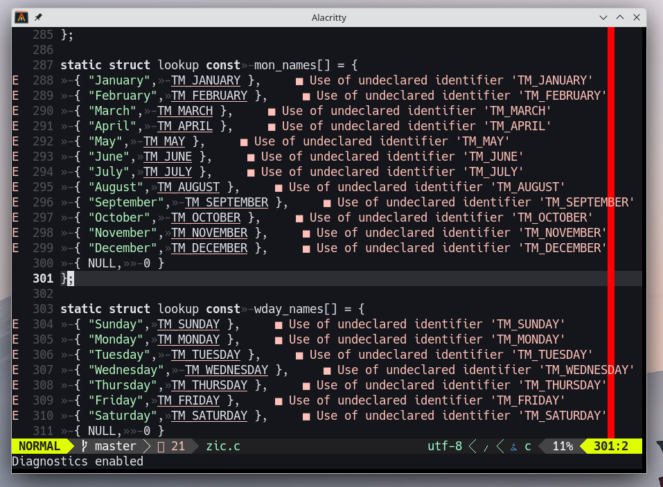 So it is obvious that our LSP clangd does not have this information. This can also be seen in the screenshots above. You can see Neovim with LSP in connection with clang.