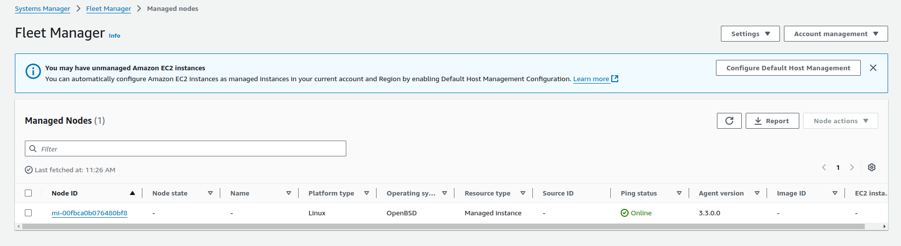 Finally you can see your registered instance in Fleet Manager